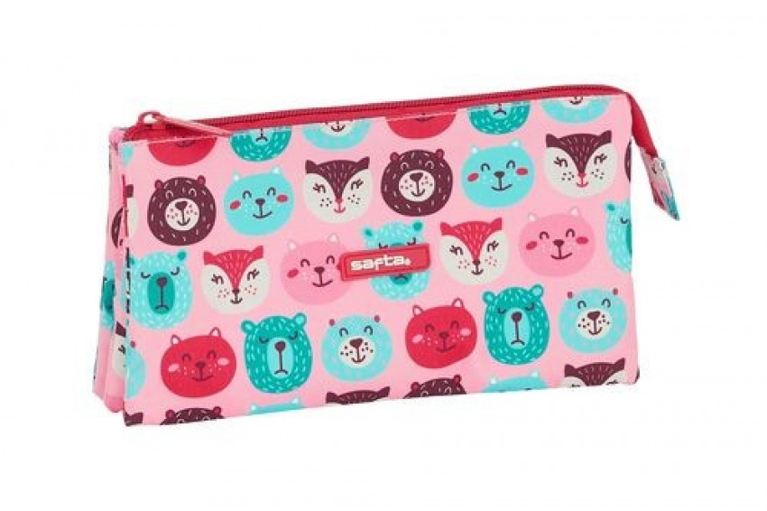 PORTATODO TRIPLE SAFTA ANIMALITOS FRESA 22X12X3CM
