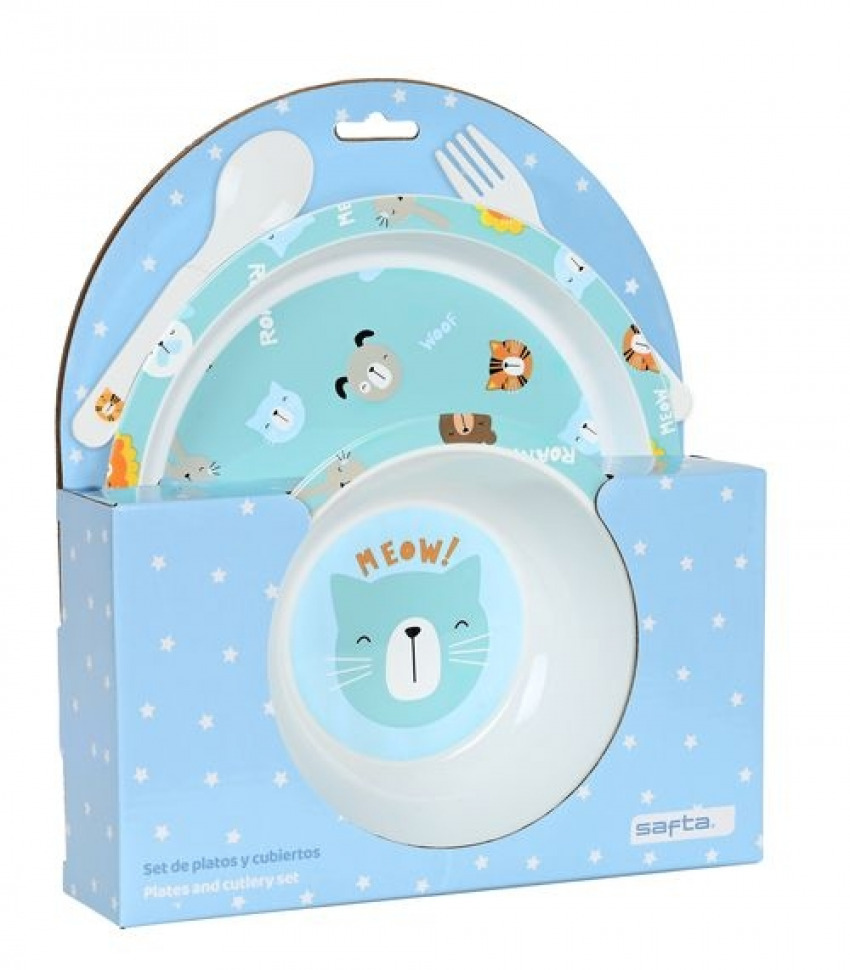 SET DE PLATOS Y CUBIERTOS CAT 22,5X26X5,5CM