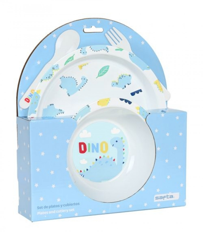SET DE PLATOS Y CUBIERTOS DINOLAND 22,5X26X5,5CM