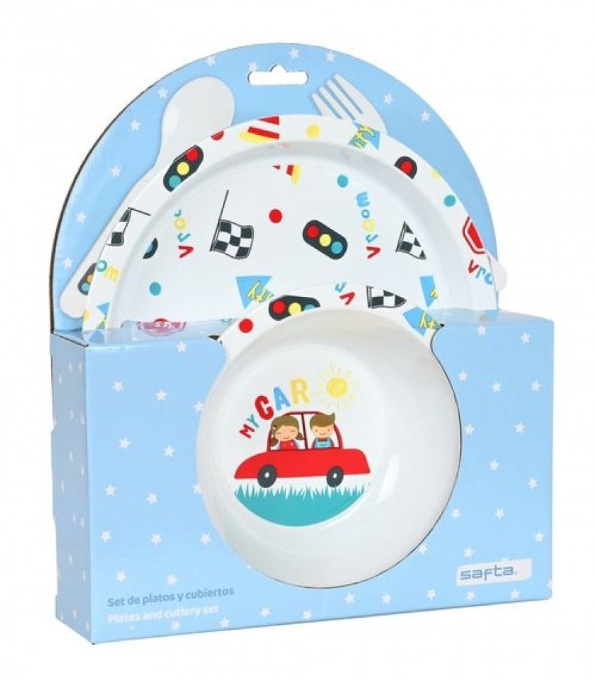 SET DE PLATOS Y CUBIERTOS MY CAR 22,5X26X5,5CM