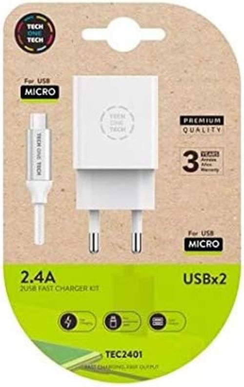 CARGADOR Y CABLE DE DATOS MICRO USB ANDROID BLANCO