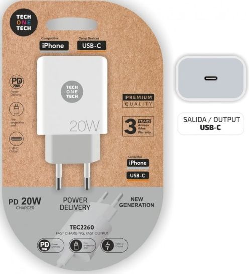 CARGADOR ULTRA RAPIDO BLANCO 20W SALIDA USB-C