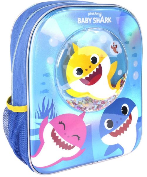 MOCHILA INFANTIL CON CONFETTI BABY SHARK 25X31X10CM