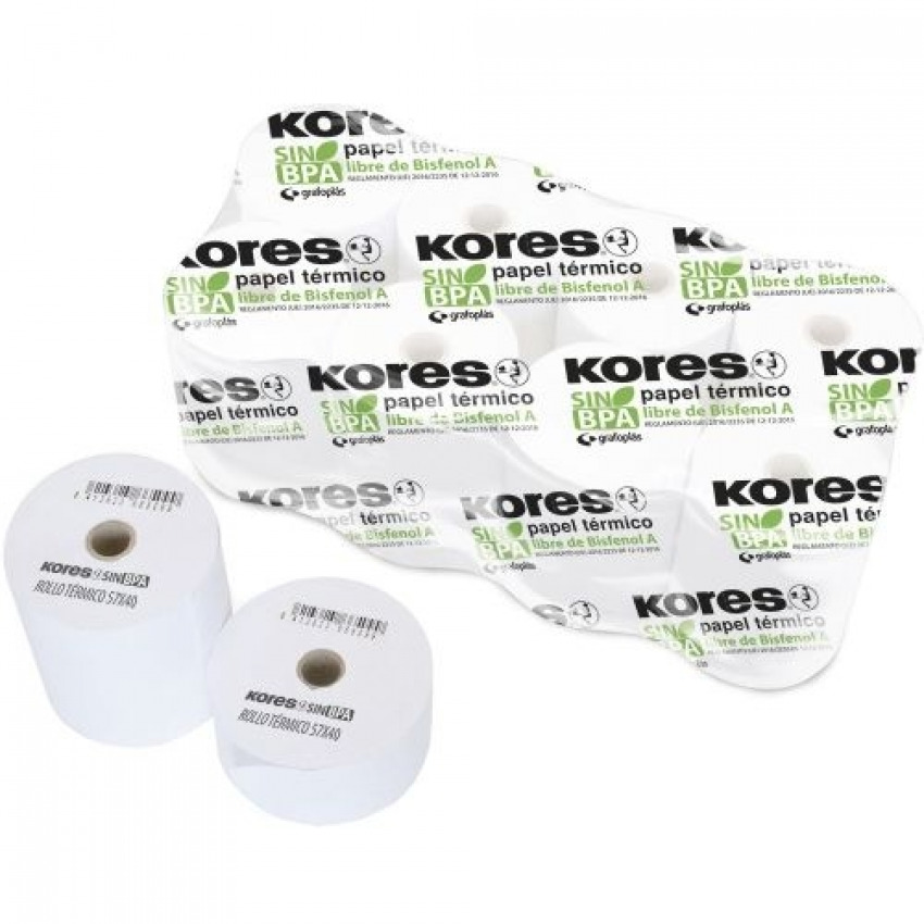 PACK 10 ROLLO PAPEL TERMICO SIN BISFENOL 57X55X12MM KORES