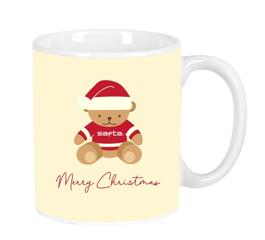TAZA GRANDE OSITO ROJO FELICES FIESTAS 8X9,5X8CM