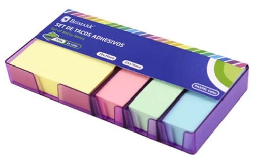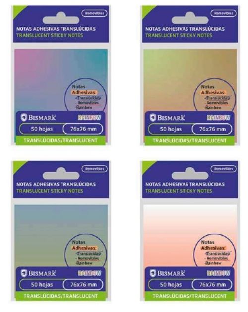 Taco notas adhesivo bismark translucido 76x76mm surtido rainbow