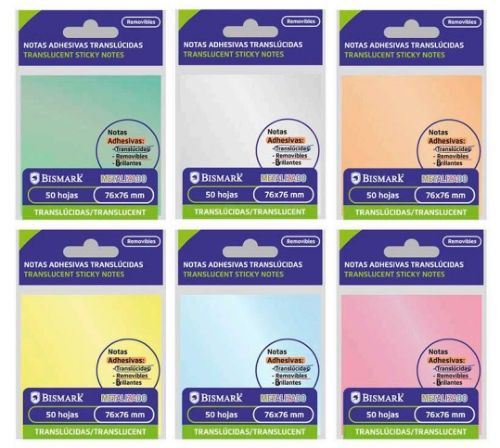 Taco notas adhesivo bismark translucido metalico 76x76mm surtido