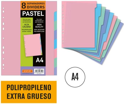 Bolsa separadores a4 extra-fuerte 8 pesta?as pastel multitaladro