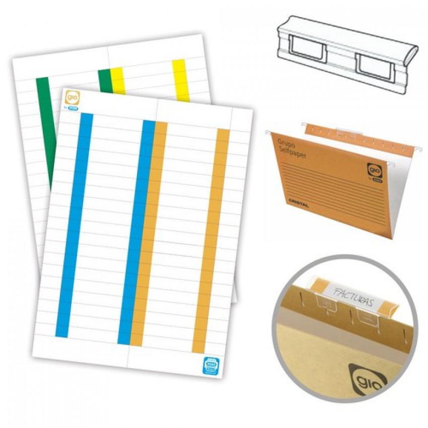 Paq/10 hojas 38 etiquetas cristal kio 8,2x1,3cm borde color