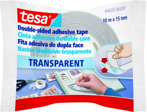 C/12 ROLLOS CINTA DOBLE CARA 10MX15MM TRANSPARENTE