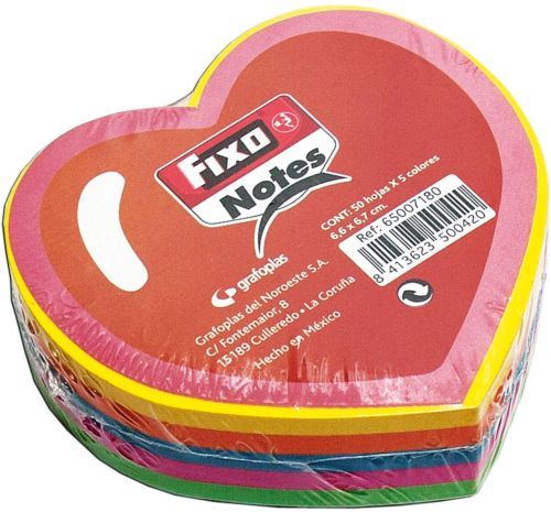 BLOC 250 NOTAS ADHESIVAS CORAZON 76X76MM FIXO COLORES NEON