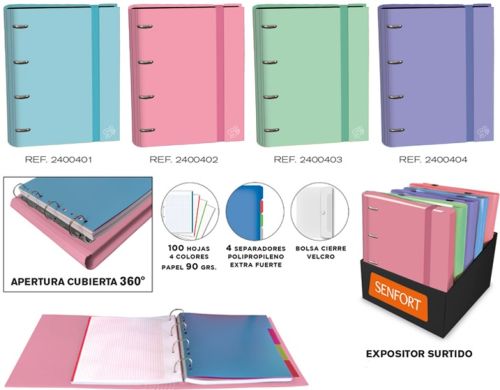 C/4 CARPETA RINGBOOK FOAM PASTEL A4 4 ANILLAS 100H C/SEP. PP.