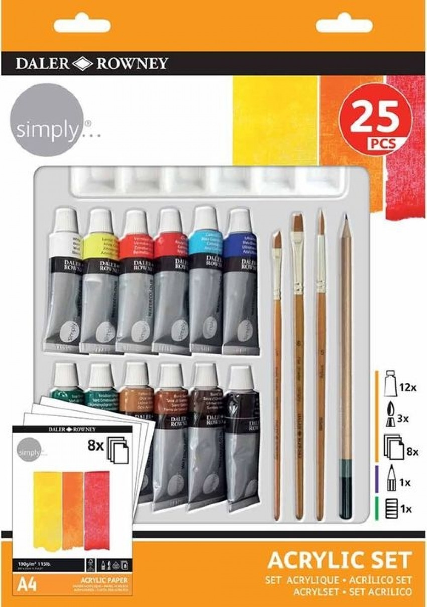 Set de 25 tubos de pintura acrilica simply