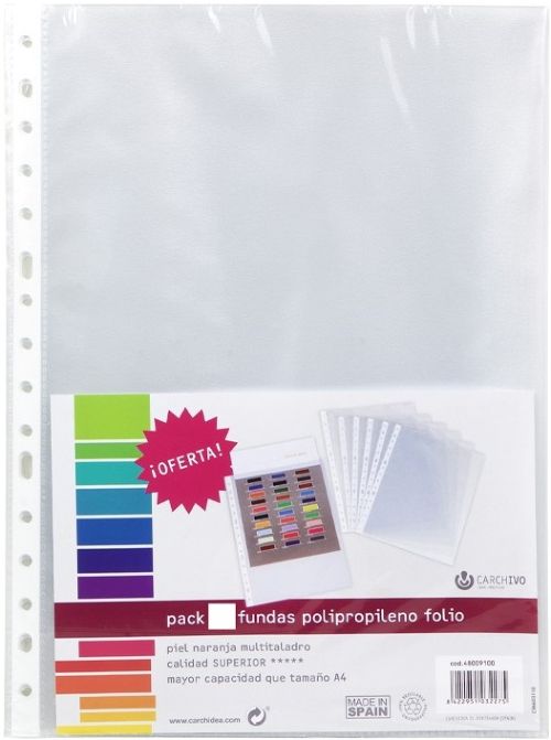 C/100 FUNDAS Fº MULTITALADRO PP STANDARD 80MC PIEL NARANJA