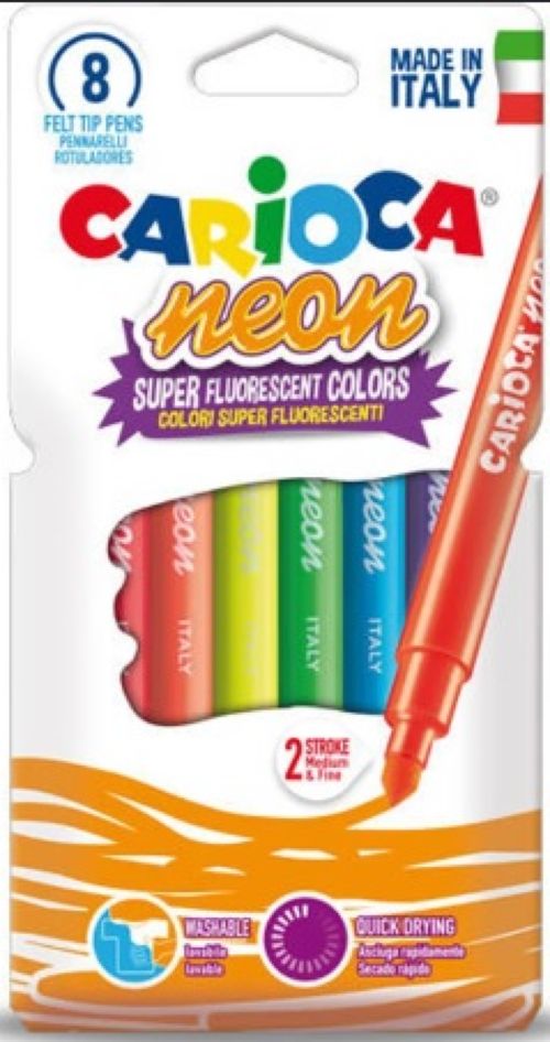 Estuche 8 rotuladores carioca neon colores super fluorescentes lavable