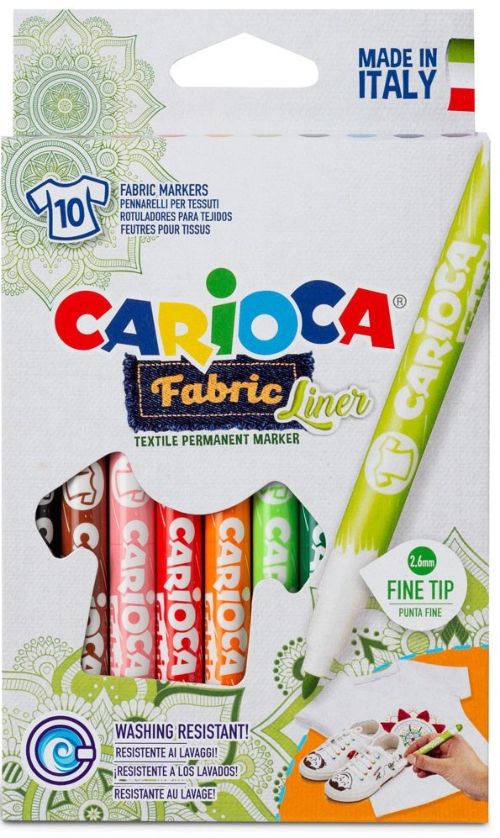 Estuche 10 rotuladores carioca fabric para tejido punta fina colores surtidos