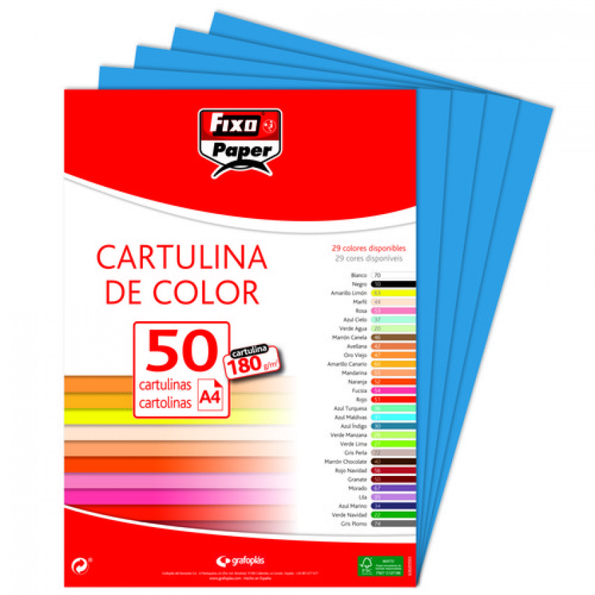 Paq/50 cartulinas fixo a4 180g. azul indigo