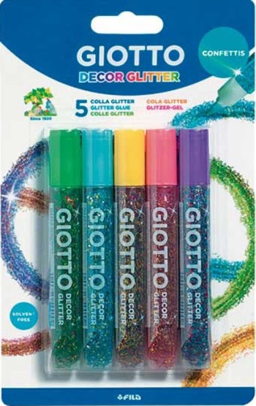 BLISTER 5 TUBOS 10ML COLA GLITTER GLUE CONFETTIS GIOTTO