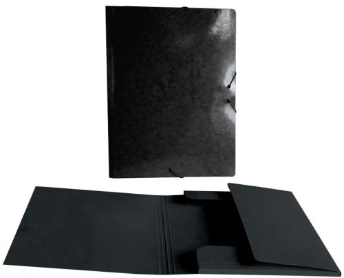 Carpeta folio gomas y solapas cart?n forrado brillo laser negro