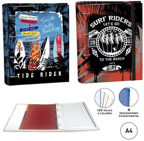 C/4 CARPETA A4 4 ANILLAS CON RECAMBIO 120H SURF RIDERS SURT