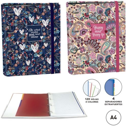 C/4 CARPETA A4 4 ANILLAS CON RECAMBIO 120H PAISLEY SURTIDO