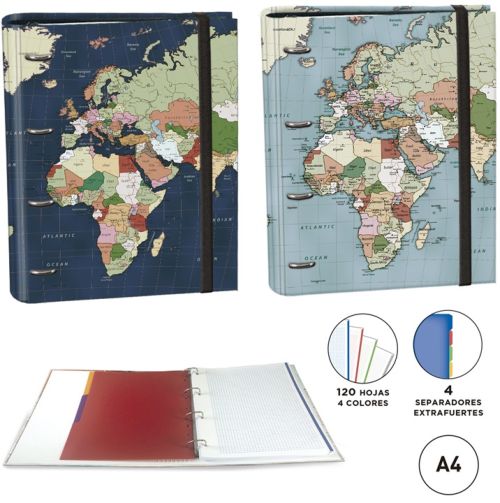 C/4 CARPETA A4 4 ANILLAS CON RECAMBIO 120H MAPAMUNDI SURTID