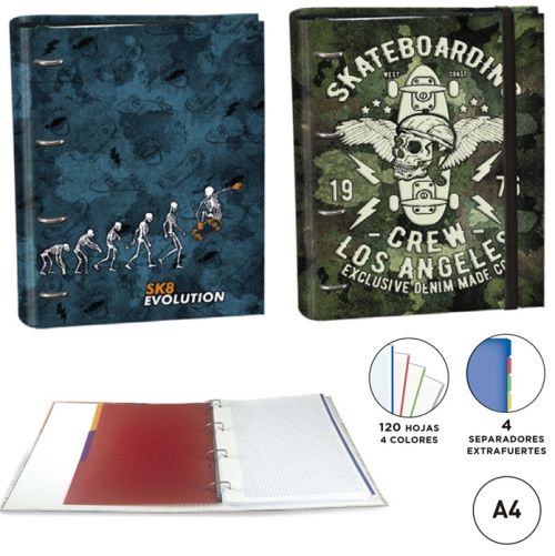 C/4 CARPETA A4 4 ANILLAS CON RECAMBIO 120H SKATEBOARD SURTI