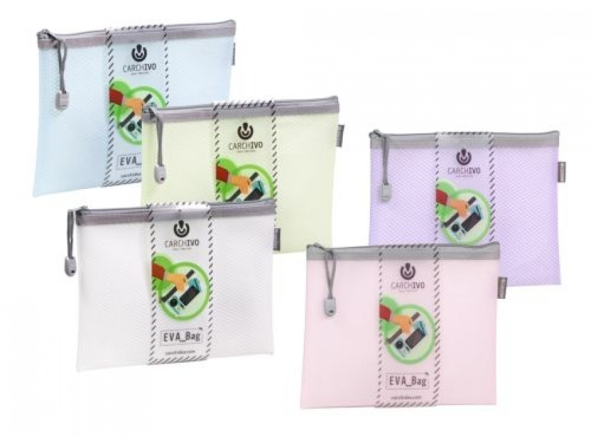 Paq/12 bolsas cremallera eva bag a6 colores surtidos 10,5cm x 14,8cm
