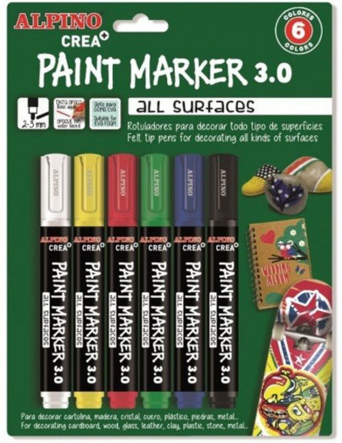 BLISTER 6 ROTULADORES ALPINO PAINT MARKERS COLORES BASICOS