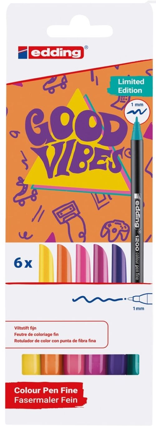 Estuche 6 rotuladores edding 1200 colores Amarillo, naranja, violeta, rosa, turquesa y magenta