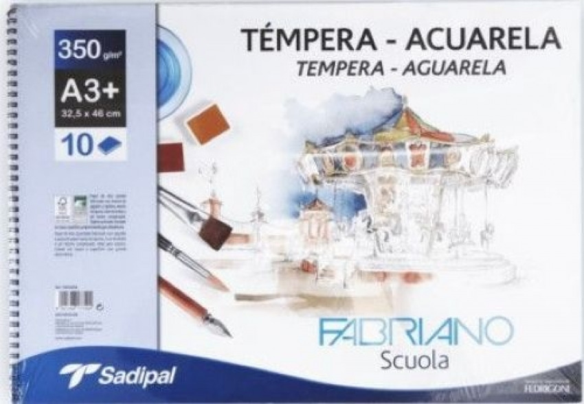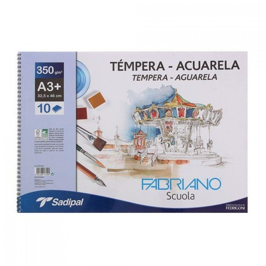 Bloc espiral acuarela y tempera a3+ 10h 350g fabriano scuola