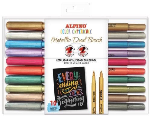Estuche 10 rotuladores doble punta dual brush colores metalicos