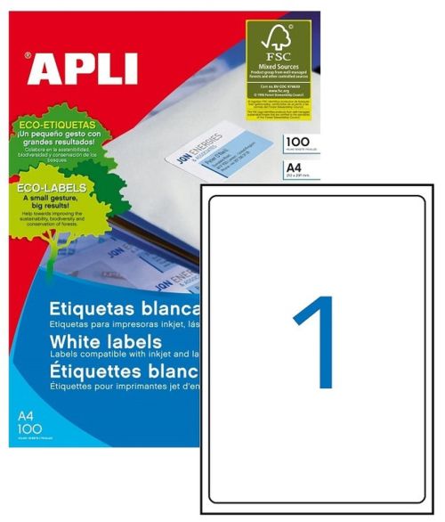 C/100 hojas etiquetas permanentes ft/im 199,6x289,1mm apli cantos romos