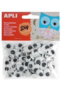 BOLSA 100 OJOS MOVILES NEGROS OVALADOS MEDIDAS SURTIDAS