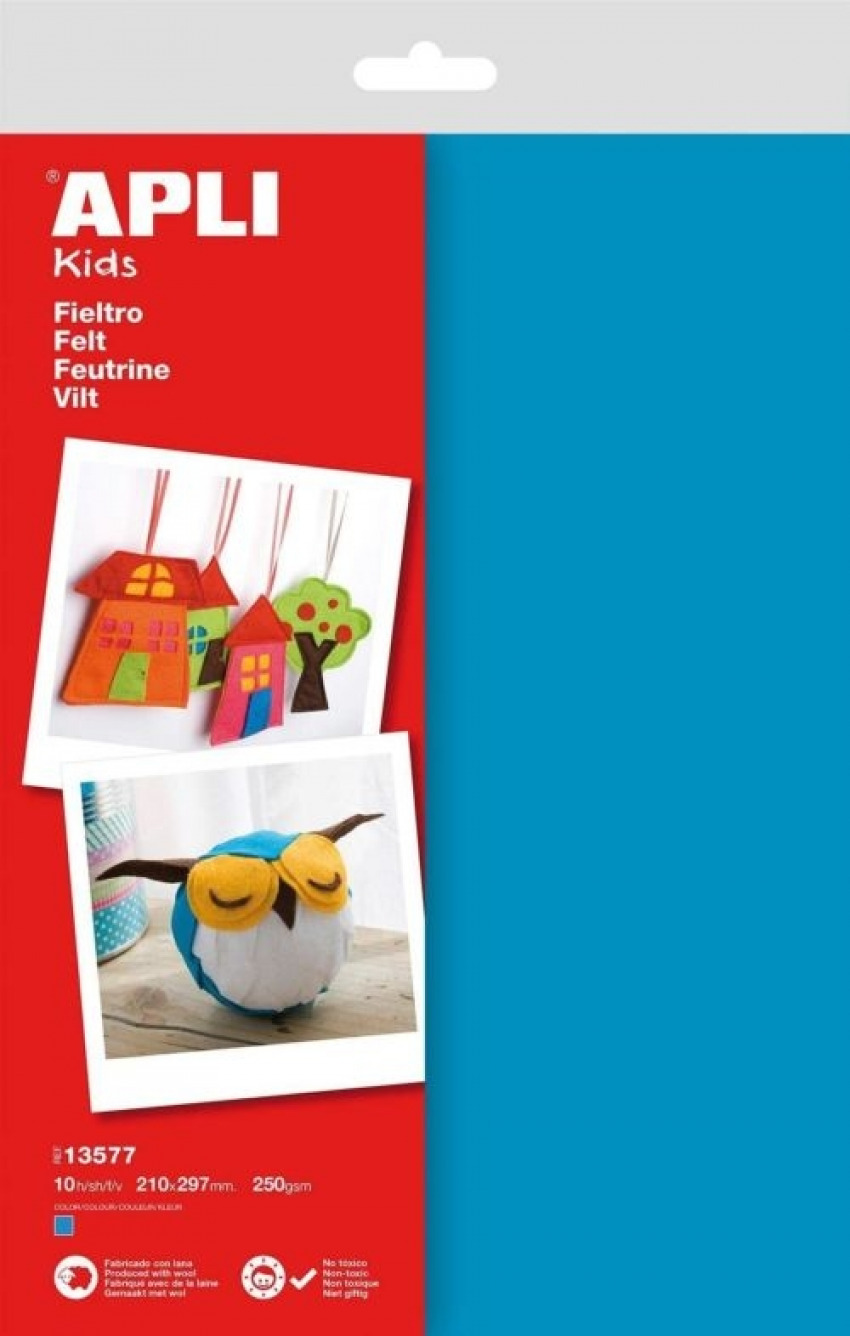 Blister 10 hojas fieltro a4 azul apli