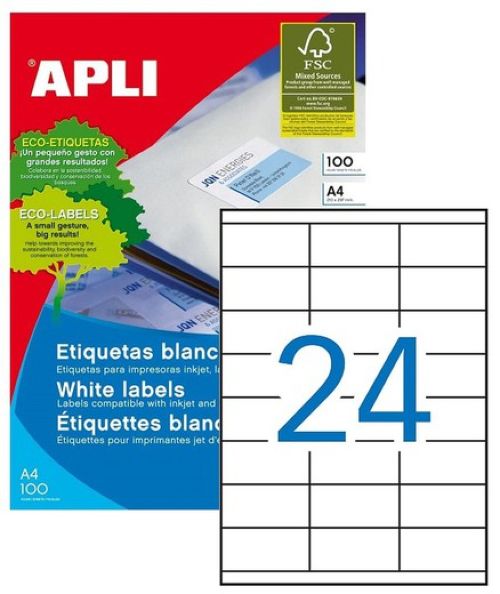 C/100 HOJAS DE ETIQUETAS BLANCAS PERMANENTES 70X33.8 MM