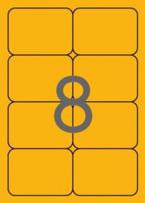 C/100 HOJAS ETIQUETAS FT/IM 99,1X67,7MM NARANJA CANTOS ROMO