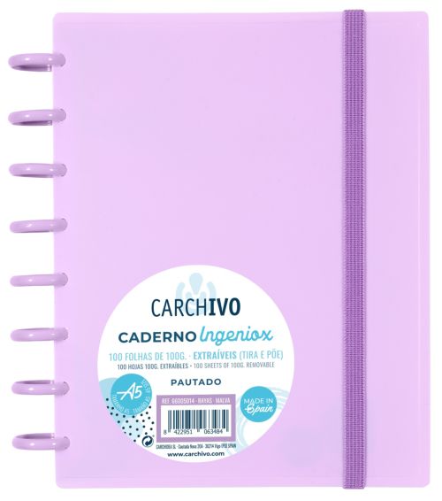 CUADERNO INGENIOX A5 100H CUADRICULA MALVA PASTEL