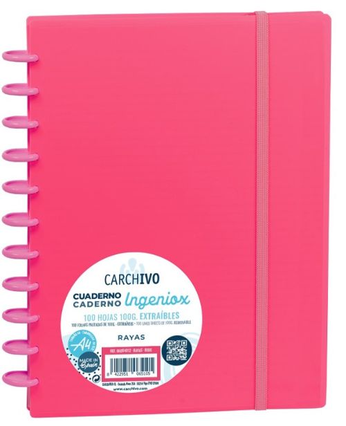 CUADERNO INGENIOX A4 100H HORIZONTAL ROJO INTENSE