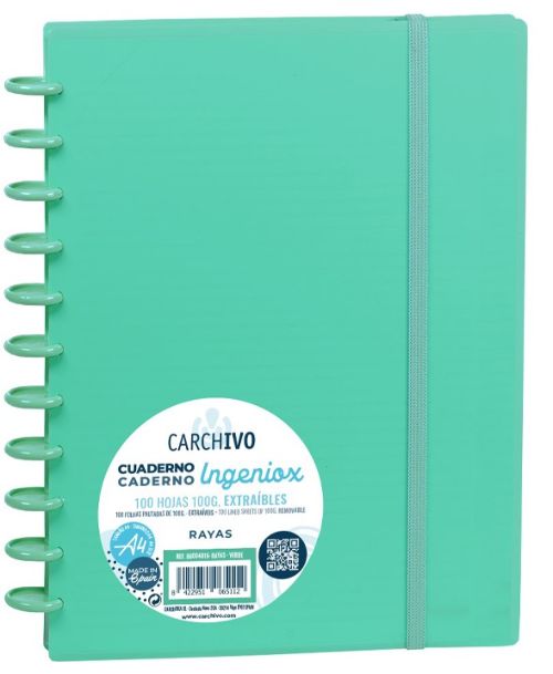 CUADERNO INGENIOX A4 100H HORIZONTAL VERDE PASTEL