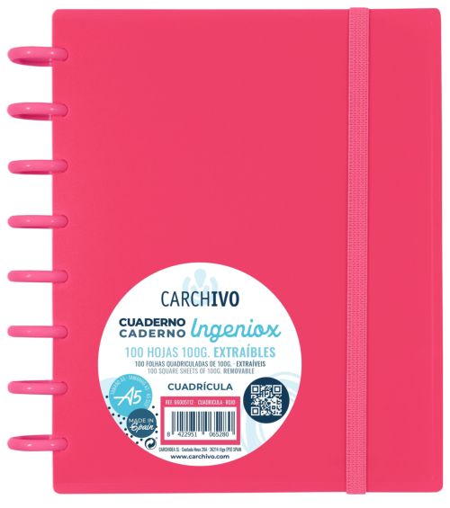 CUADERNO INGENIOX A5 100H CUADRICULA ROJO INTENSE
