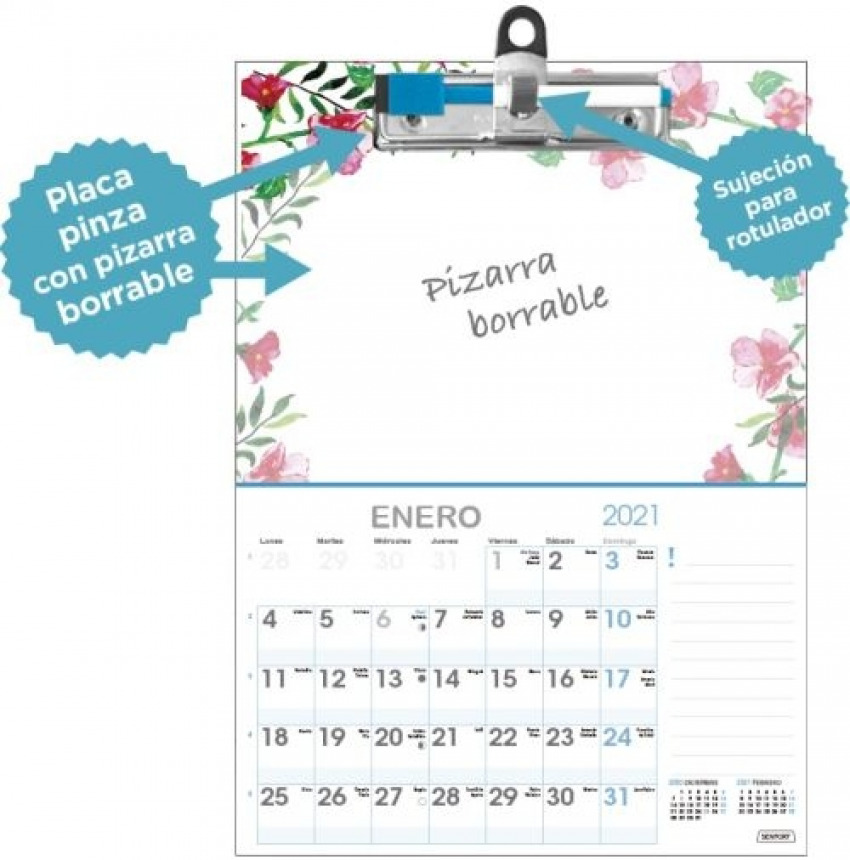CALENDARIO DE PARED 2021 23X32 CM CON PIZARRA BLANCA