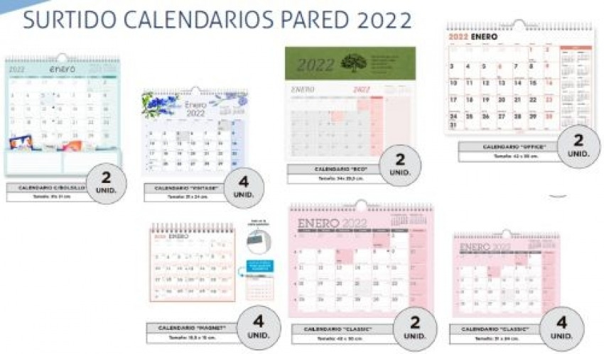 C/20 calendarios pared 2022 modelos y medidas surtidas