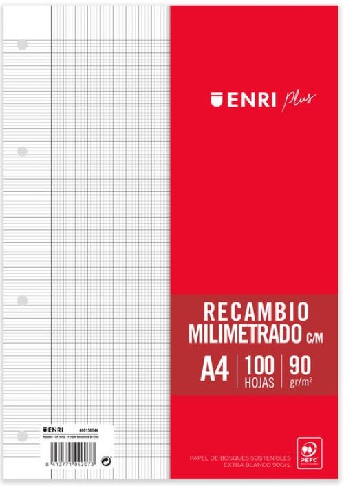 Recambio a4 100h 4 taladros 90g milimetrado con margen enri
